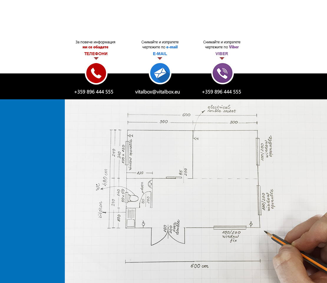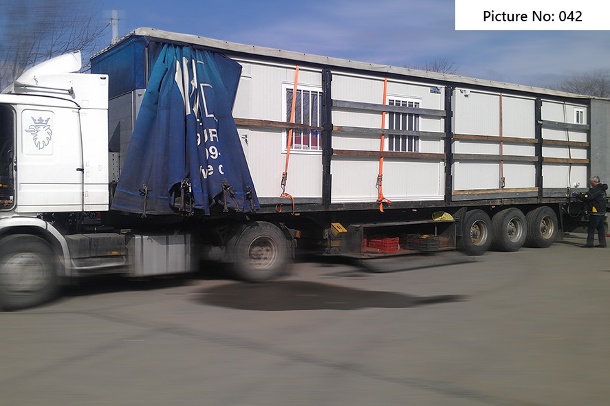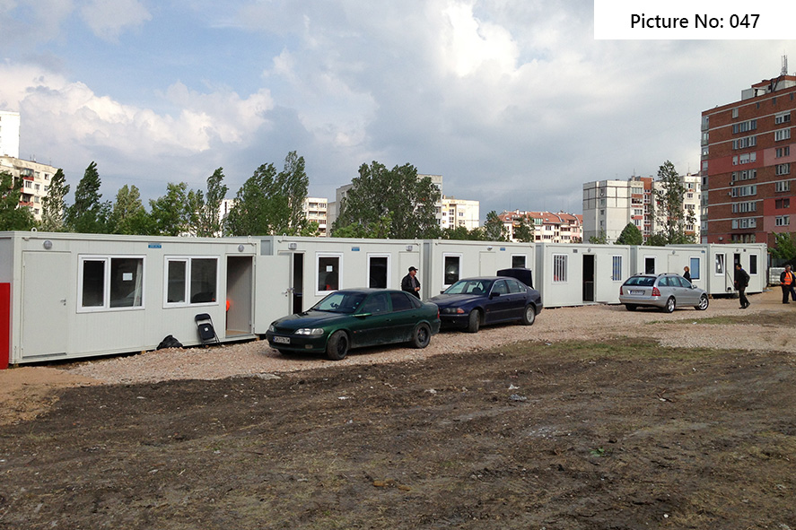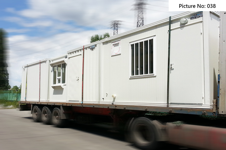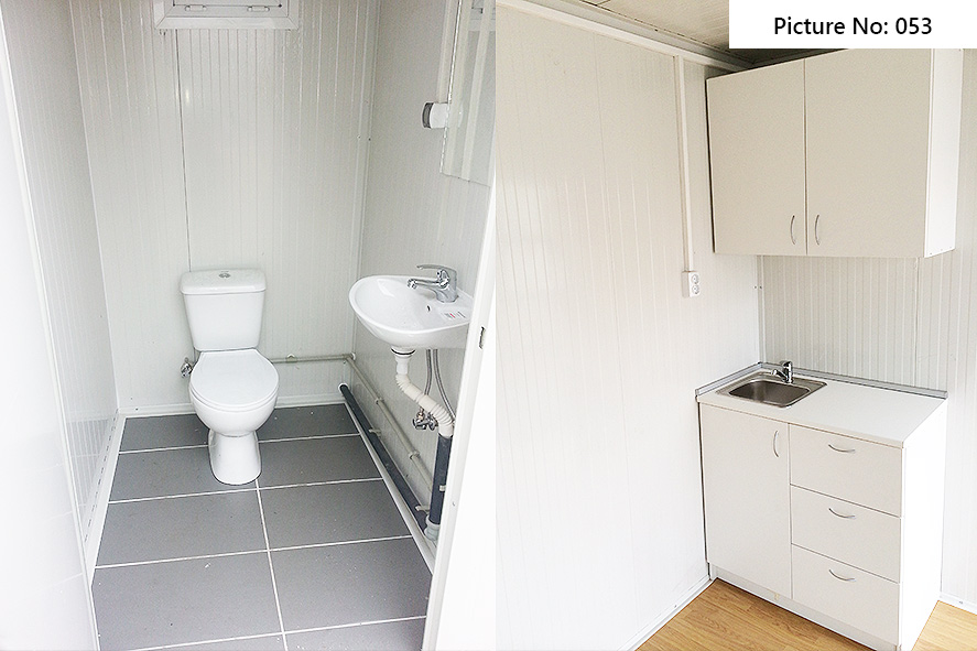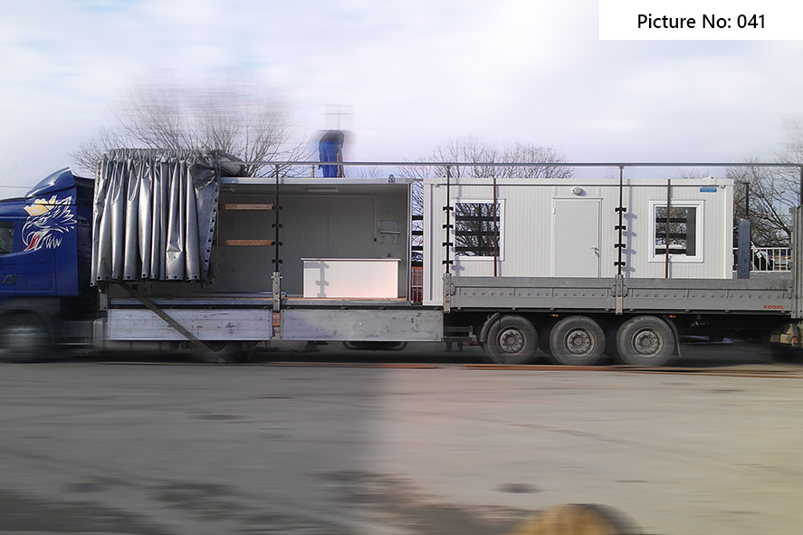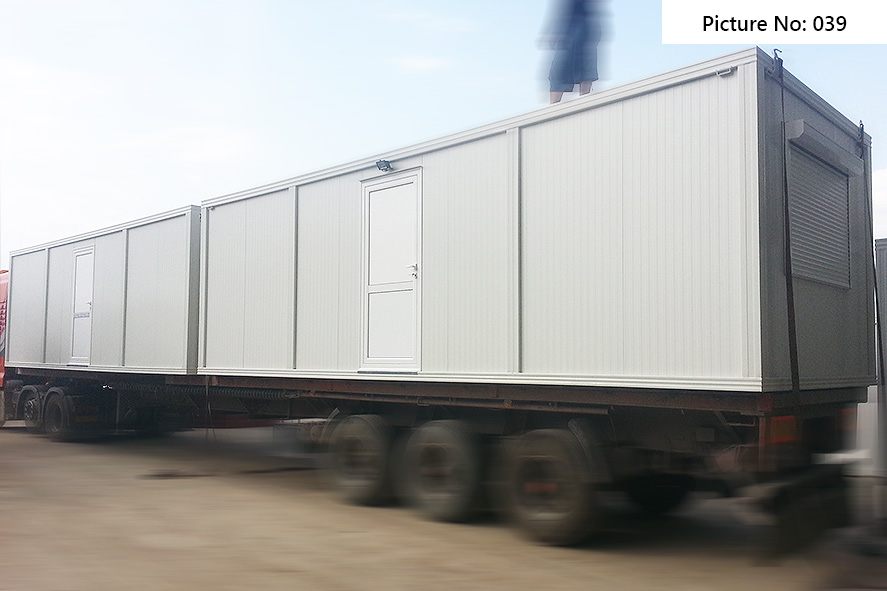 Die Containers werden mit galvanisierten Stahlkonstruktion hergestellt. Die Ausdauer des Standardbodens ist 200kg/qm. Die Isolationsschicht kann 4cm- oder 8cm dicken Sandwich panel in Farbe RAL 9002 mit 4-Kammer-österreichischen PVC-Fenster sein. Ein Standardcontainer mit Größe 240x600cm enthält zwei Steckdosen, Elektrobox mit Schutzvorrichtungen und LED-Lampen. Der Bodenbelag im Bad ist Terrakotta. Die WC- und Badausstattung ist ein Waschbecken, ein Spiegel, eine Dusche und WC. Die Größe einer Standardküchenausrüstung ist 80x50x100 cm. Die Standardküchenausrüstung enthält ein Waschbecken, Wasserhähne und zwei Schränke - oben und unten.