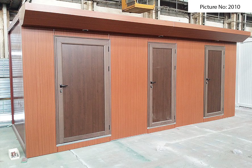 Wir bieten Sanitätscontainers hoher Qualität an, die rostfreie Stahlkonstruktion, Wände von Sandwich panel, einen Bodenbelag von wasserdichtem Stoff und eingebaute Elektroinstallation - Steckdosen, Schlüssel, Lampen - haben. Die Sandwich panels bestehen aus zwei Aluminiumschichten, die mit einem Polyäthylenkern thermisch verbunden sind. Dieser Polyäthylenkern kann Ihrem Wunsch nach 4 oder 8 cm dick sein. Der Bodenbelag ist Terrakotta oder Linoleum.