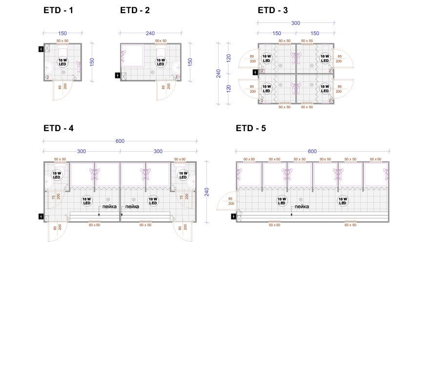Die WC-Anlage sowie das Duschsystem begreifen die Standartausrüstung dem Wunsch des Kunden nach ein. Wir bieten auch zusätzliche Ausrüstung an.