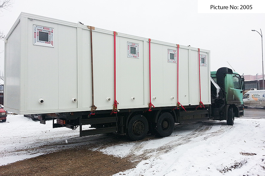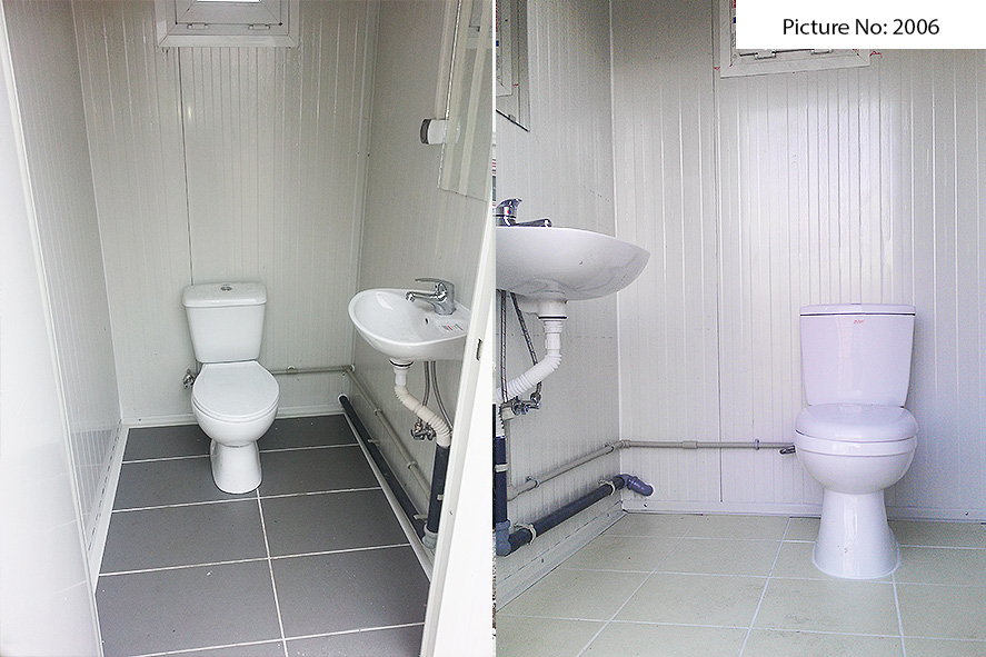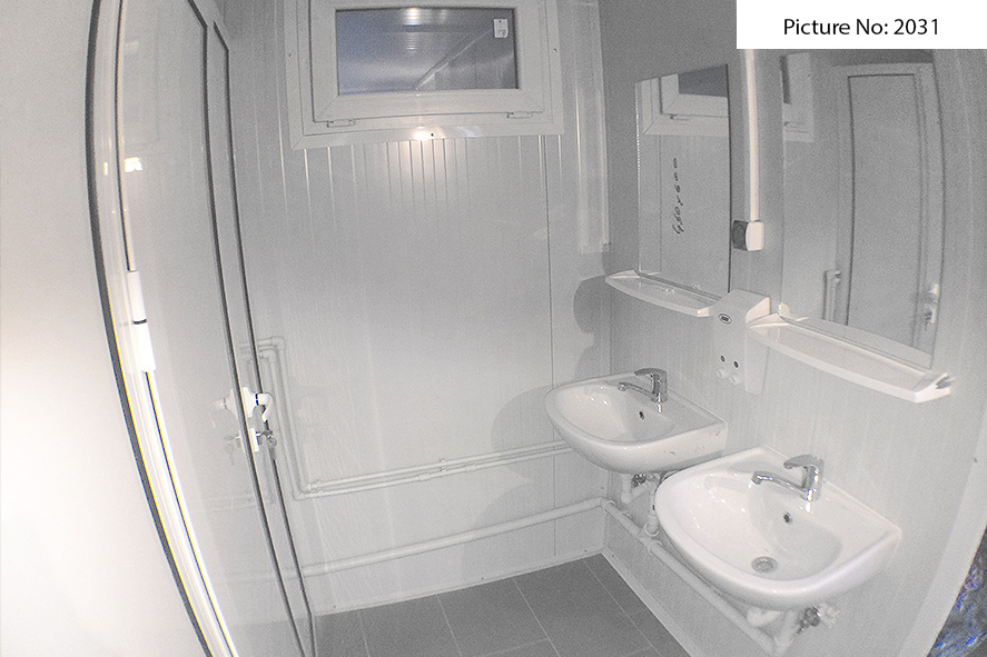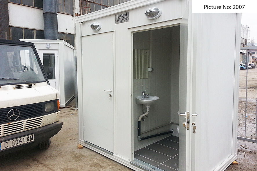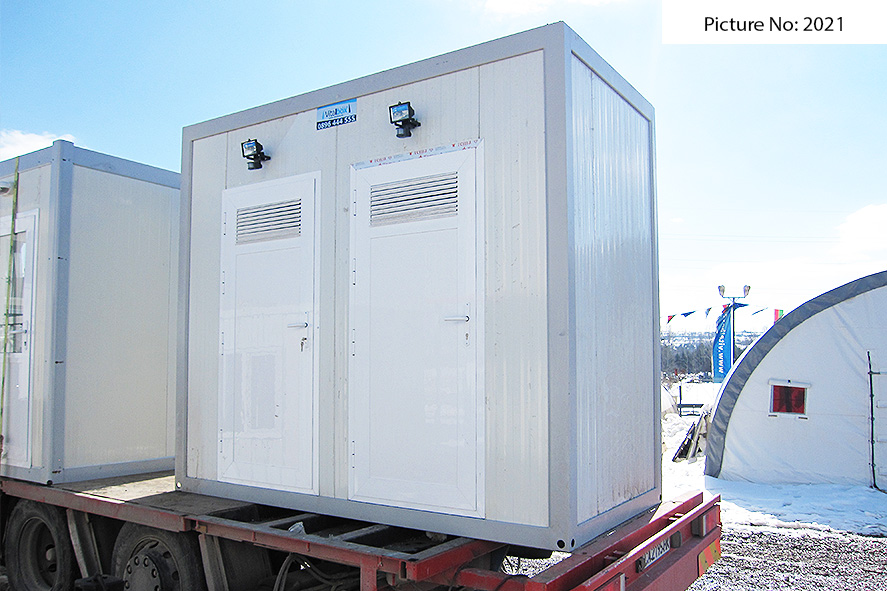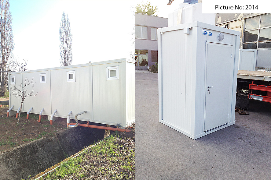 Wir bieten Sanitätscontainers hoher Qualität an, die rostfreie Stahlkonstruktion, Wände von Sandwich panel, einen Bodenbelag von wasserdichtem Stoff und eingebaute Elektroinstallation - Steckdosen, Schlüssel, Lampen - haben. Die Sandwich panels bestehen aus zwei Aluminiumschichten, die mit einem Polyäthylenkern thermisch verbunden sind. Dieser Polyäthylenkern kann Ihrem Wunsch nach 4 oder 8 cm dick sein. Der Bodenbelag ist Terrakotta.