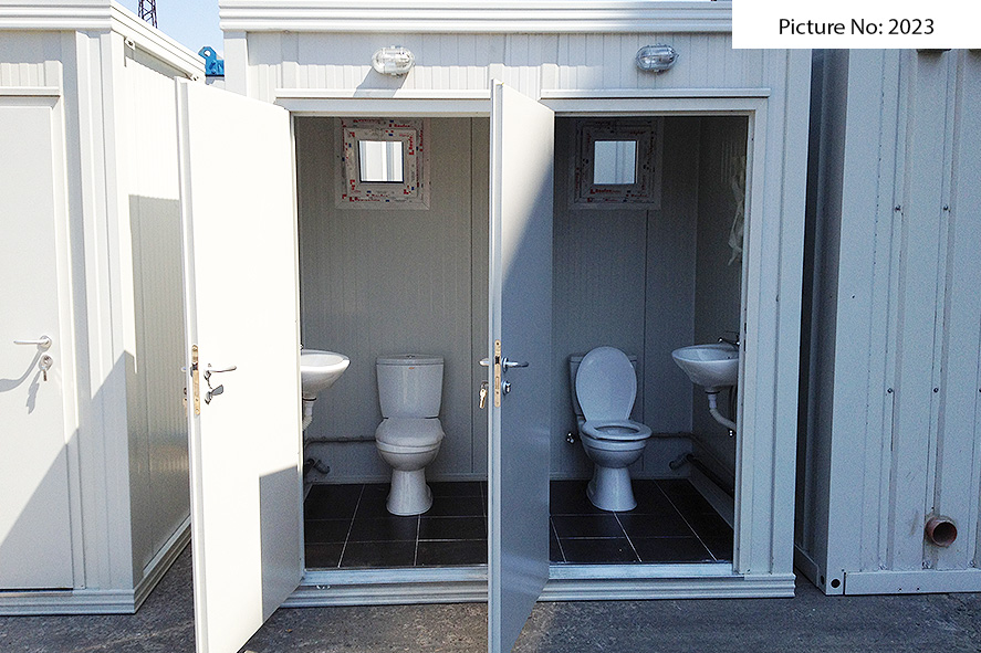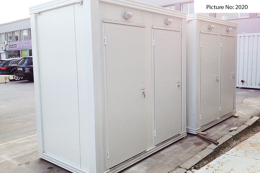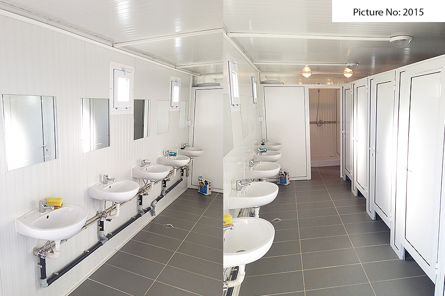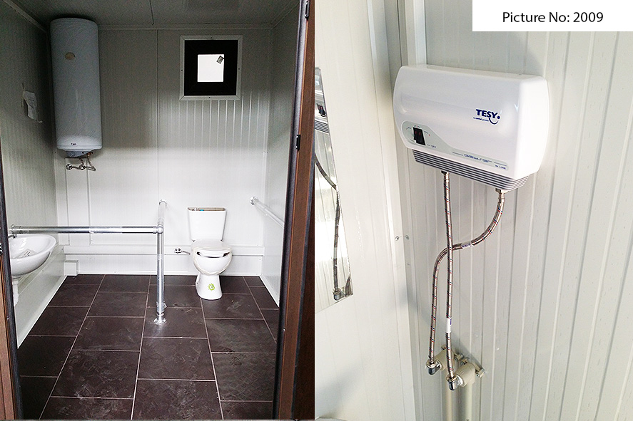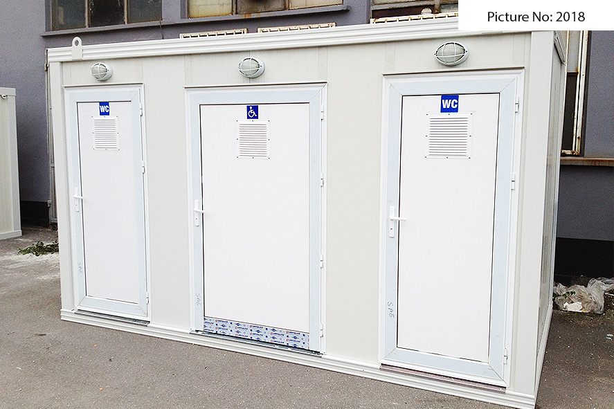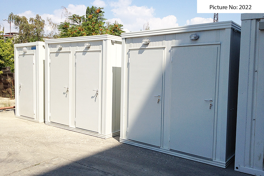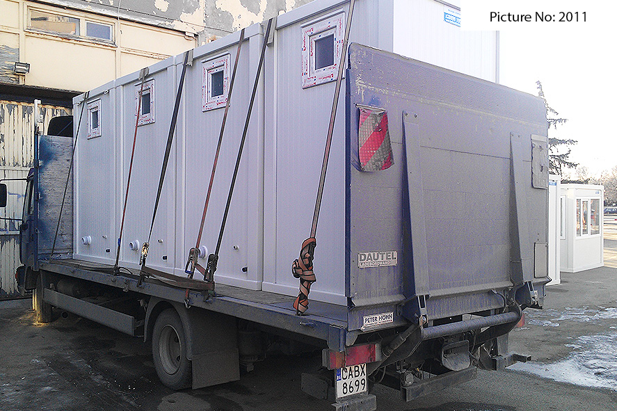 Wir bieten Sanitätscontainers hoher Qualität an, die rostfreie Stahlkonstruktion, Wände von Sandwich panel, einen Bodenbelag von wasserdichtem Stoff und eingebaute Elektroinstallation - Steckdosen, Schlüssel, Lampen - haben. Die Sandwich panels bestehen aus zwei Aluminiumschichten, die mit einem Polyäthylenkern thermisch verbunden sind. Dieser Polyäthylenkern kann Ihrem Wunsch nach 4 oder 8 cm dick sein. Der Bodenbelag ist Terrakotta.
