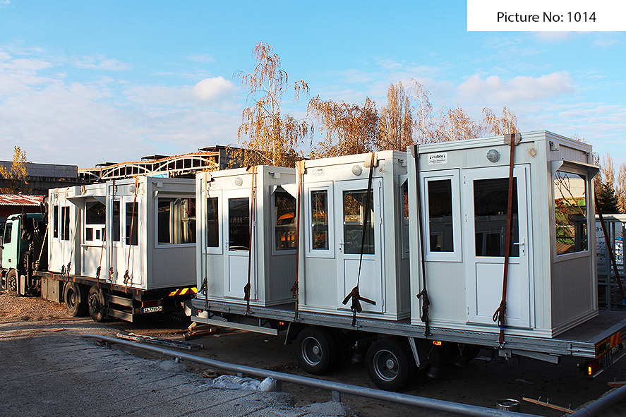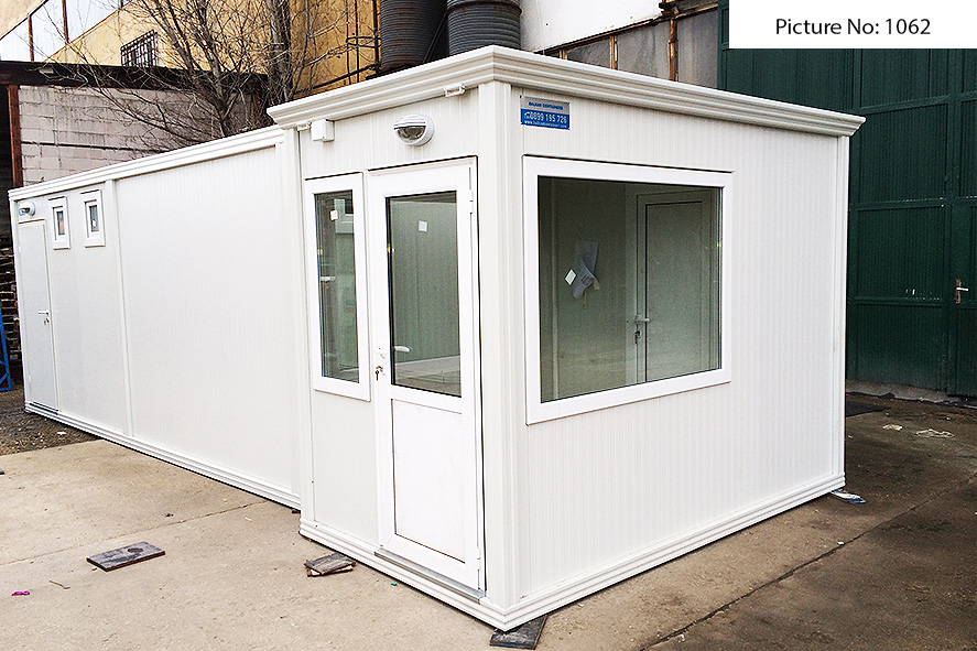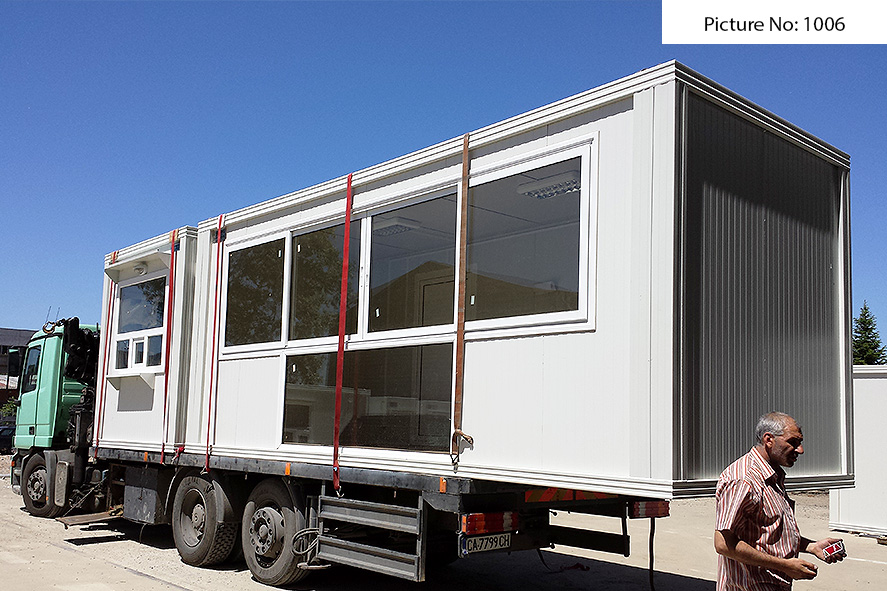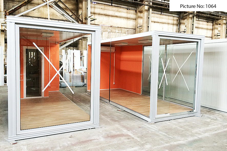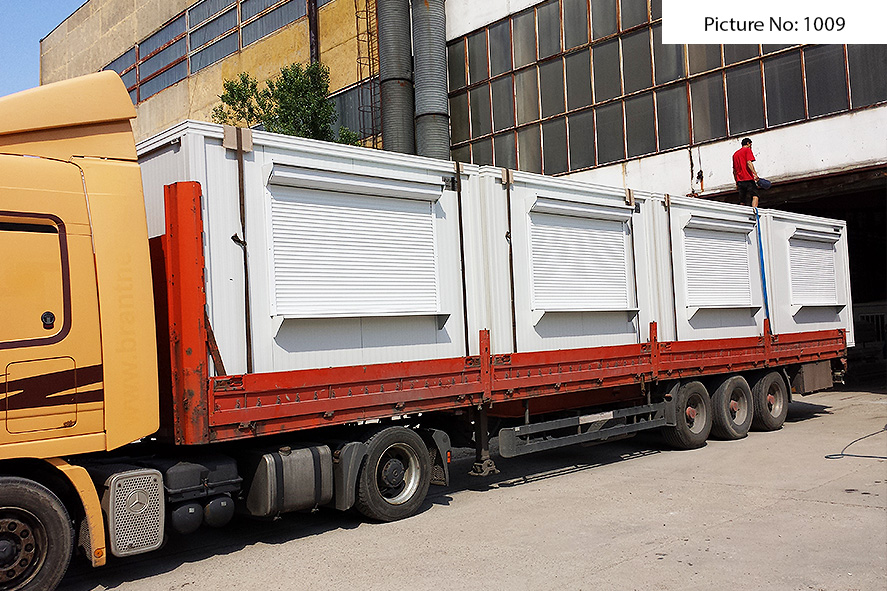 Die Containers werden mit einer galvanisierten Stahlkonstruktion hergestellt. Die Ausdauer des Standardbodens ist 200kg/qm. Die Isolationsschicht kann 4cm- oder 8cm dicken Sandwich panel in Farbe RAL 9002 mit 4-Kammer-österreichischen PVC-Fenster sein. Ein Standardcontainer mit Größe 240x600cm enthält zwei Steckdosen, Elektrobox mit Schutzvorrichtungen und LED-Lampen. Der Bodenbelag im Bad ist Terrakotta. Die WC- und Badausstattung ist ein Waschbecken, ein Spiegel, eine Dusche und WC. Die Größe einer Standardküchenausrüstung ist 80x50x100 cm. Die Standardküchenausrüstung enthält ein Waschbecken, Wasserhähne und zwei Schränke - oben und unten.